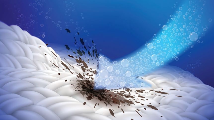 Nasypte na postižené místo sypkou surovinu a nechte působit asi půl hodiny. Odstraňte krátkými jemnými pohyby pomocí kartáčku (starý zubní a spíše jemný, aby neponičil vlákna) a následně vyperte klasicky v pračce.
